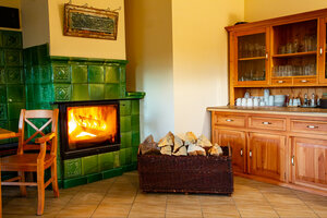 Powstał dom o urokliwym klimacie, łączący mozolnie odtwarzane oryginalne elementy stuletniego domu i nowoczesne instalacje. Dom pachnący drewnem, woskiem i kamieniem.